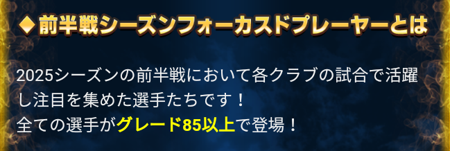 2025 1st HALFSEASON FOCUSED PLAYERS & ピックアップ について