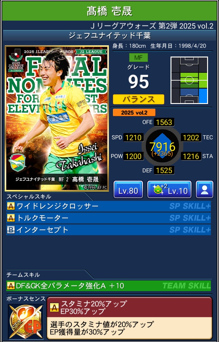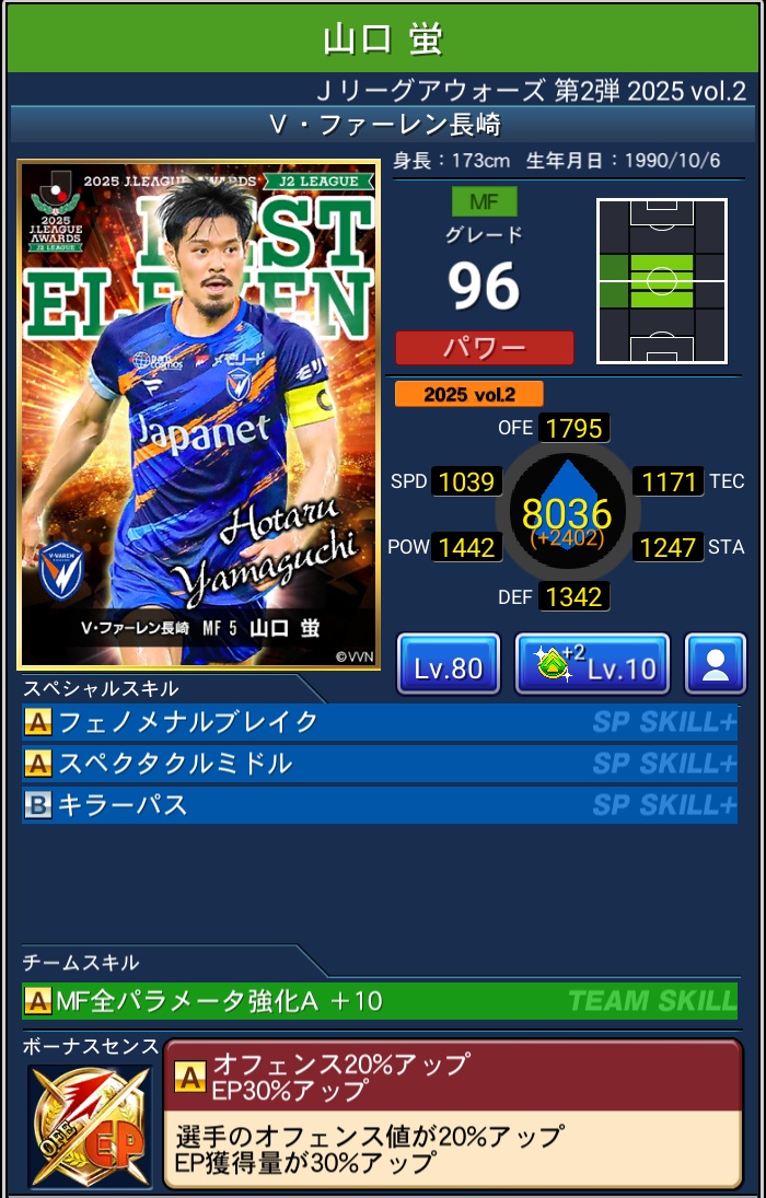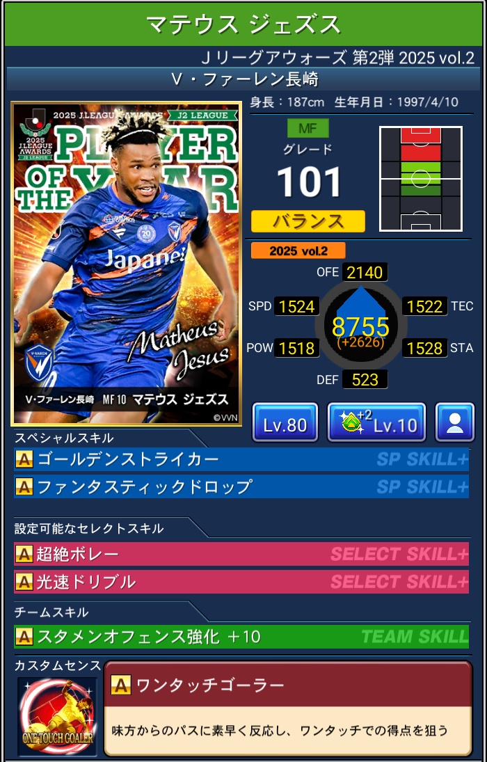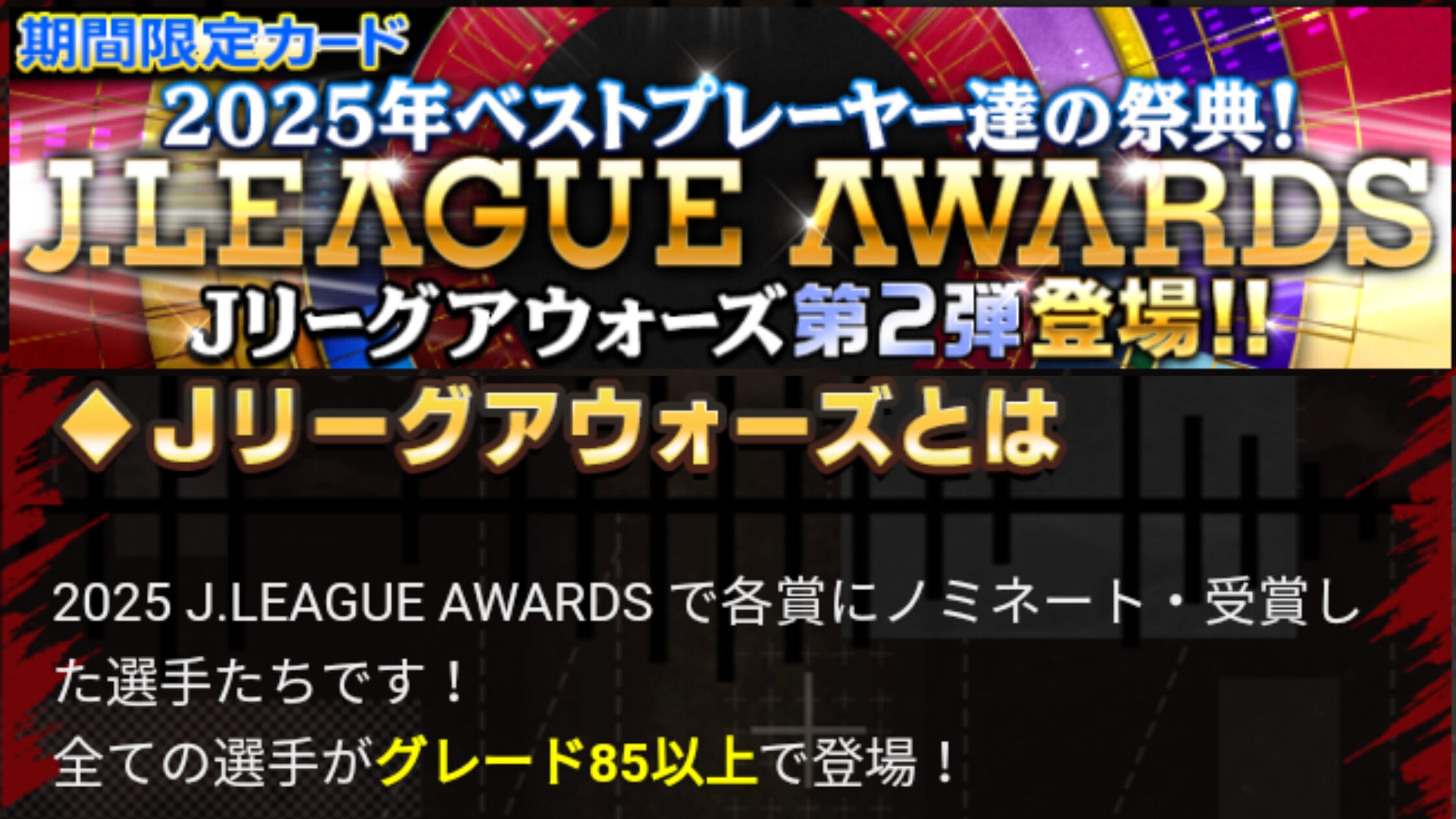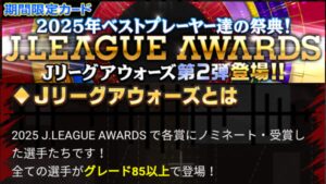 【Jクラ攻略】2025年度『J2編』J.LEAGUE AWARDS Vol.2 2026 3/31 限定カード 2026年3月31日 目次2025 J.LEAGUE AWARDS Vol.2 & ピックアップ について 排出期間 2026年3月6日~2026年3月31日 PLAYER OF THE YEAR BEST ELEVEN PLAYERS 限定カード よかったらシェアしてね! URLをコピーしました! URLをコピーしました! 【Jクラ攻略】2025年度『J1編』J.LEAGUE AWARDS Vol.2 関連記事 【Jクラ攻略】2025年度『J1編』J.LEAGUE AWARDS Vol.2 2026年3月31日 【Jクラ攻略】2025年度『J2編』J.LEAGUE AWARDS Vol.1 2026年3月4日 【Jクラ攻略】2025年度『J1編』J.LEAGUE AWARDS Vol.1 2026年3月4日 【Jクラ攻略】2025年度 TIMESLIP STAR Vol.39 2026年2月22日 【Jクラ攻略】2025年度『J2編』2nd HALFSEASON FOCUSED PLAYERS 2026年2月22日 【Jクラ攻略】2025年度『J1編』2nd HALFSEASON FOCUSED PLAYERS 2026年2月22日 【Jクラ攻略】2025年度 月間ヤングプレイヤー(9月-12月) 2026年2月9日 【Jクラ攻略】2025年度『J2編』TOPSCORERS 2026年2月9日 コメント コメントする コメントをキャンセルコメント ※ 名前 ※ メール ※ サイト 次回のコメントで使用するためブラウザーに自分の名前、メールアドレス、サイトを保存する。