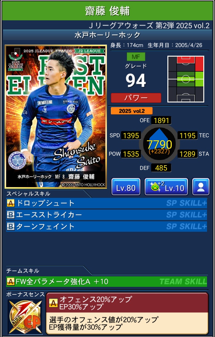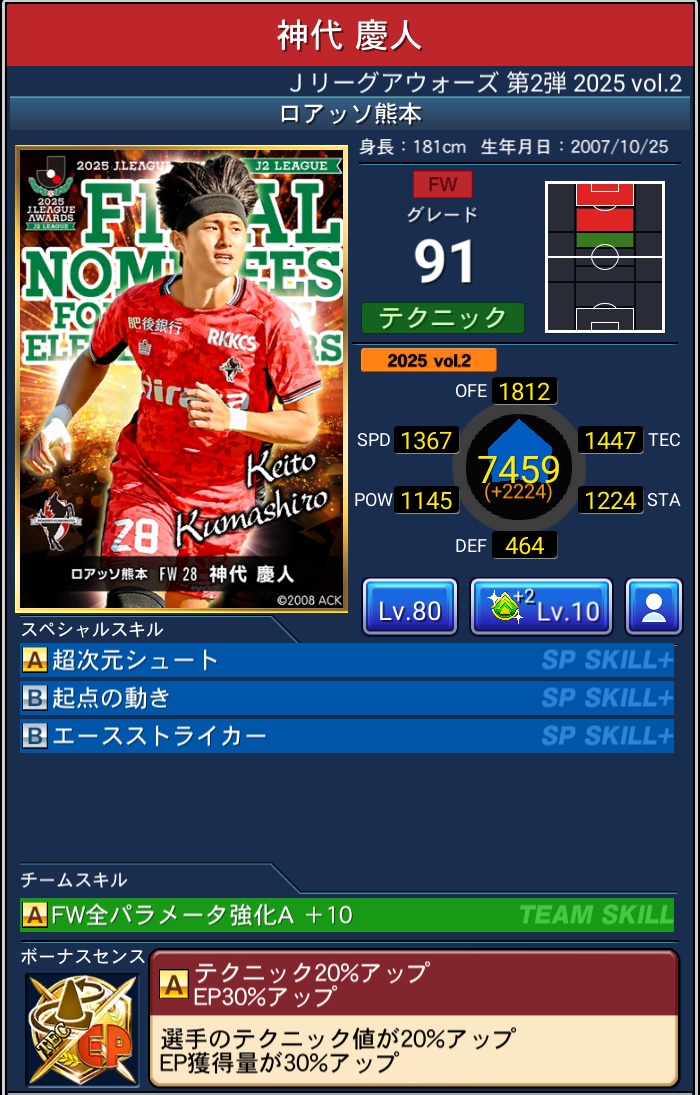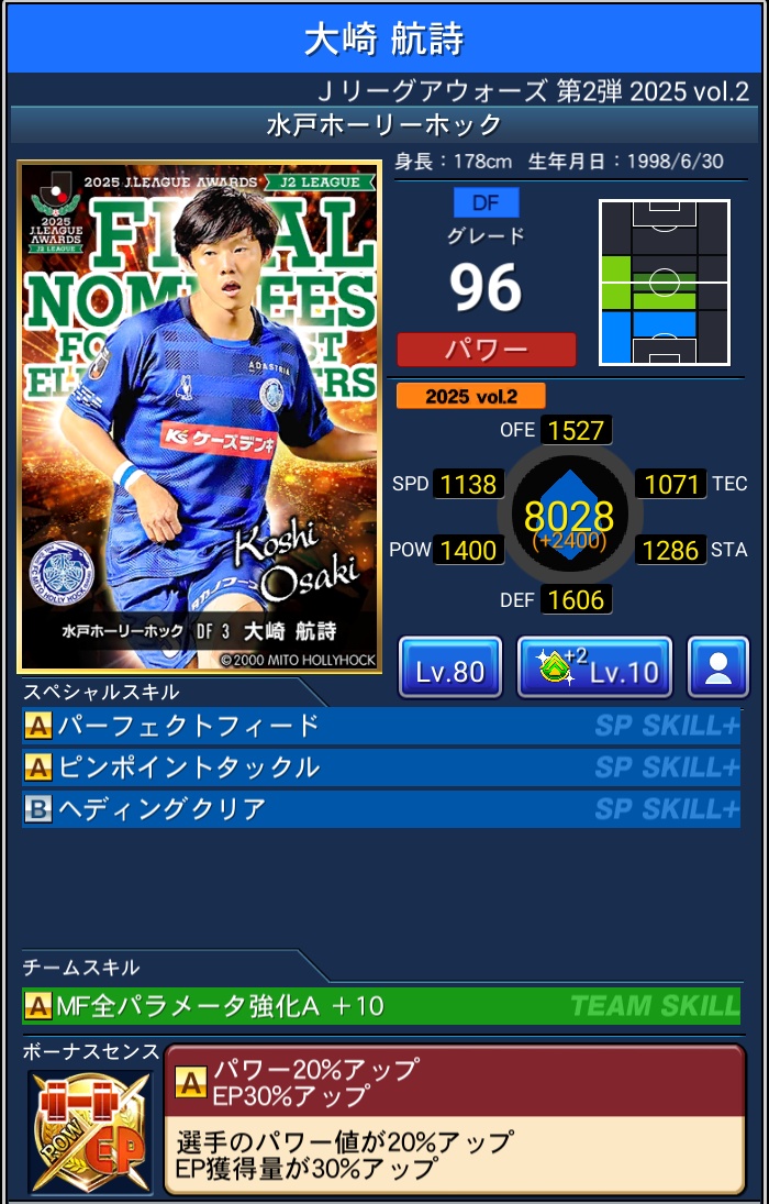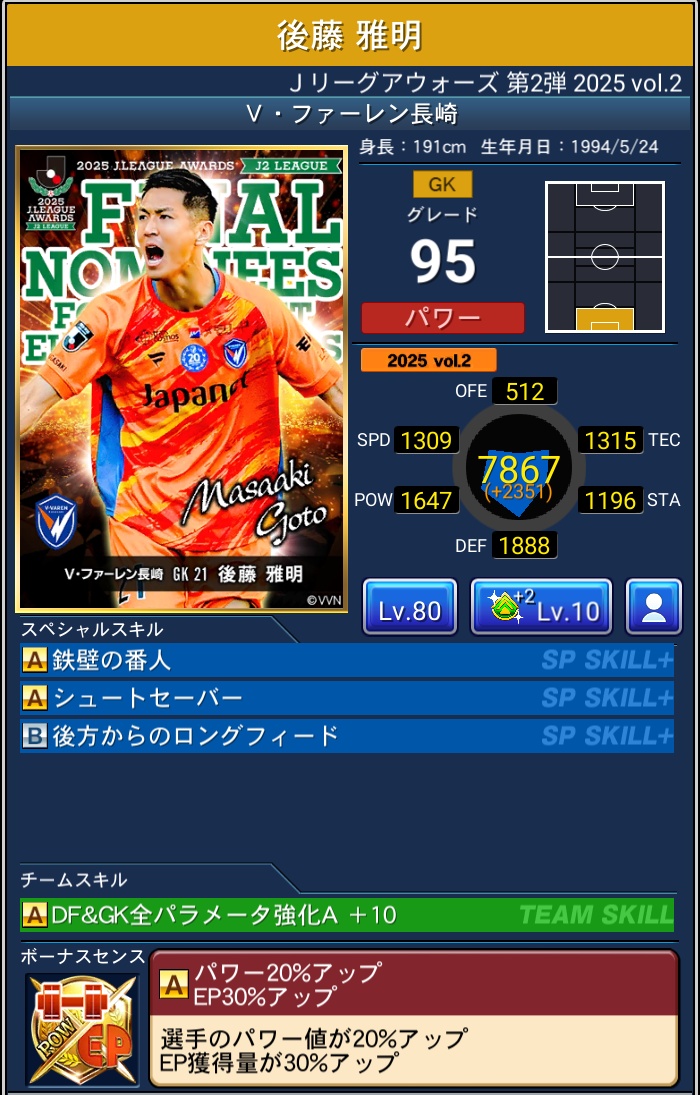 【Jクラ攻略】2025年度『J2編』J.LEAGUE AWARDS Vol.2 2026 3/31 限定カード 2026年3月31日 目次2025 J.LEAGUE AWARDS Vol.2 & ピックアップ について 排出期間 2026年3月6日~2026年3月31日 PLAYER OF THE YEAR BEST ELEVEN PLAYERS 限定カード よかったらシェアしてね! URLをコピーしました! URLをコピーしました! 【Jクラ攻略】2025年度『J1編』J.LEAGUE AWARDS Vol.2 関連記事 【Jクラ攻略】2025年度『J1編』J.LEAGUE AWARDS Vol.2 2026年3月31日 【Jクラ攻略】2025年度『J2編』J.LEAGUE AWARDS Vol.1 2026年3月4日 【Jクラ攻略】2025年度『J1編』J.LEAGUE AWARDS Vol.1 2026年3月4日 【Jクラ攻略】2025年度 TIMESLIP STAR Vol.39 2026年2月22日 【Jクラ攻略】2025年度『J2編』2nd HALFSEASON FOCUSED PLAYERS 2026年2月22日 【Jクラ攻略】2025年度『J1編』2nd HALFSEASON FOCUSED PLAYERS 2026年2月22日 【Jクラ攻略】2025年度 月間ヤングプレイヤー(9月-12月) 2026年2月9日 【Jクラ攻略】2025年度『J2編』TOPSCORERS 2026年2月9日 コメント コメントする コメントをキャンセルコメント ※ 名前 ※ メール ※ サイト 次回のコメントで使用するためブラウザーに自分の名前、メールアドレス、サイトを保存する。