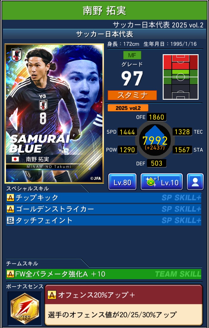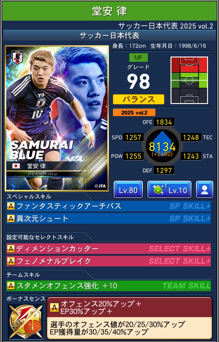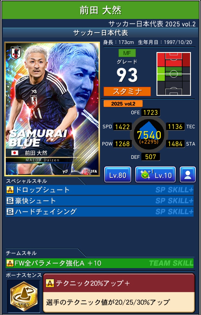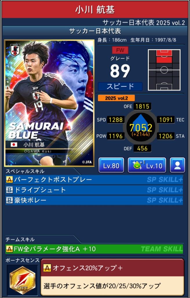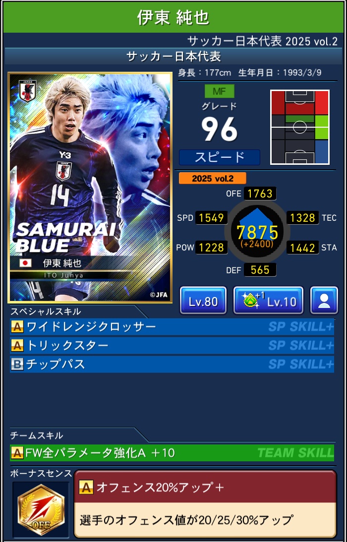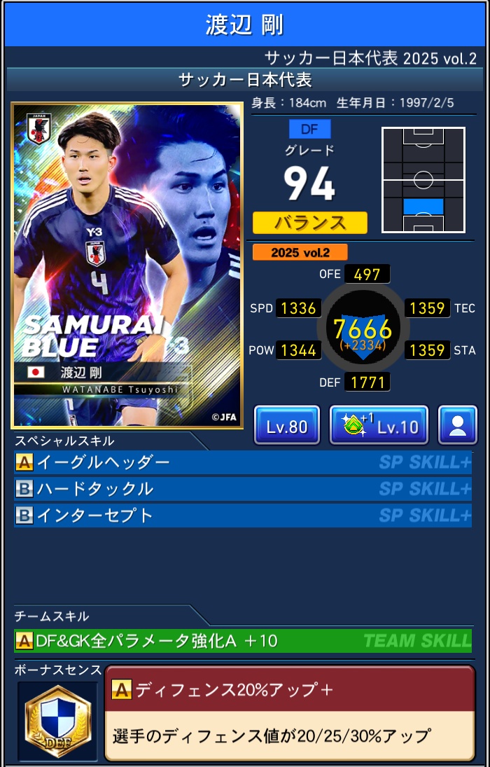 【Jクラ攻略】2025年度 日本代表 2025 11/17 サッカー日本代表 限定カード 2025年11月17日 目次2025 日本代表 & ピックアップ について 排出期間 2025年11月10日~2025年12月12日 排出選手『日本代表編』 【GK:ゴールキーパー】 【DF:ディフェンダー】 【MF/FW:ミッドフィルダー/フォワード】 サッカー日本代表 限定カード よかったらシェアしてね! URLをコピーしました! URLをコピーしました! 【Jクラ】「2025 Jリーグクライマックス!エンブレムゲッター」徹底攻略!特効12倍&霜月コイン・MVPコイン報酬まとめ 【Jクラ攻略】2025年度 月間ベストゴール(9月) 関連記事 【Jクラ攻略】2025年度 Levain CUP MVP/ニューヒーロー賞 2025年11月28日 【Jクラ攻略】2025年度『J2編』 JOKERS 2025年11月28日 【Jクラ攻略】2025年度『J1編』 JOKERS 2025年11月28日 【Jクラ攻略】2025年度 月間ベストセーブ(9月) 2025年11月28日 【Jクラ攻略】2025年度『J2編』FOCUSED PLAYERS Vol.6 2025年11月19日 【Jクラ攻略】2025年度『J1編』FOCUSED PLAYERS Vol.6 2025年11月19日 【Jクラ攻略】2025年度 月間ベストゴール(9月) 2025年11月17日 【Jクラ攻略】2025年度『J2編』 HIGHRISES 2025年11月6日 コメント コメントする コメントをキャンセルコメント ※ 名前 ※ メール ※ サイト 次回のコメントで使用するためブラウザーに自分の名前、メールアドレス、サイトを保存する。
