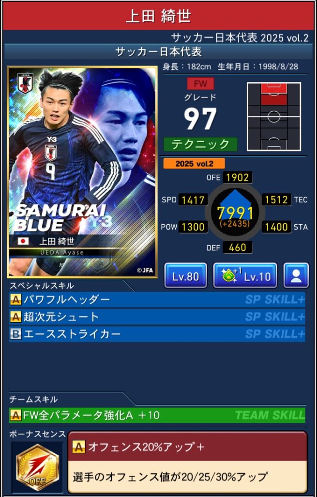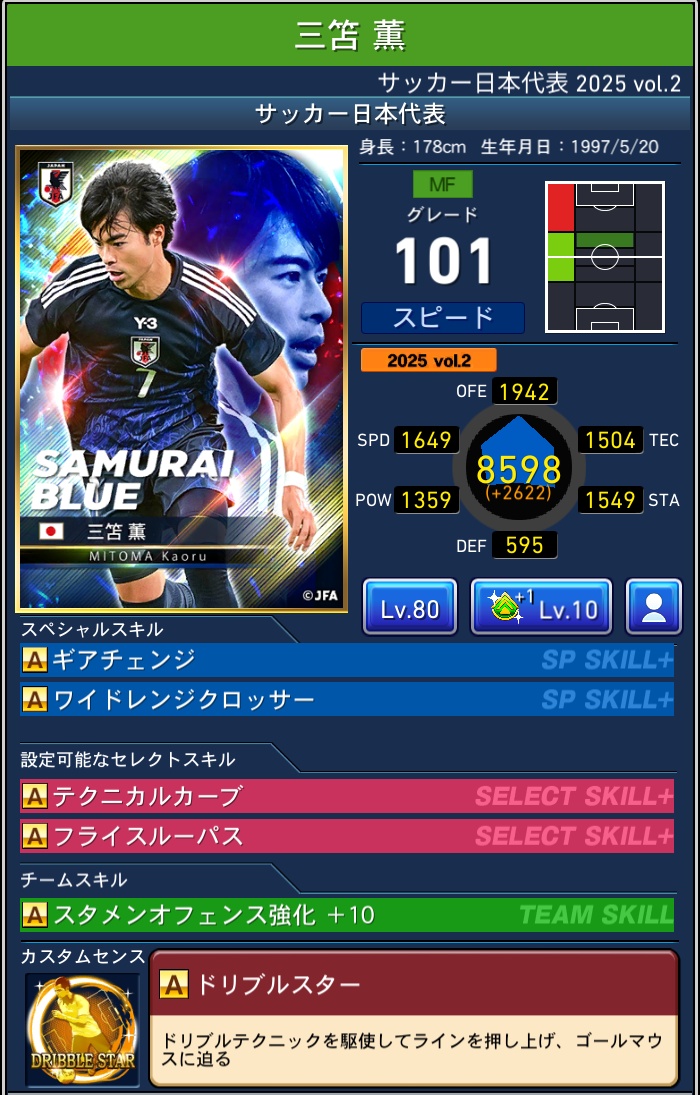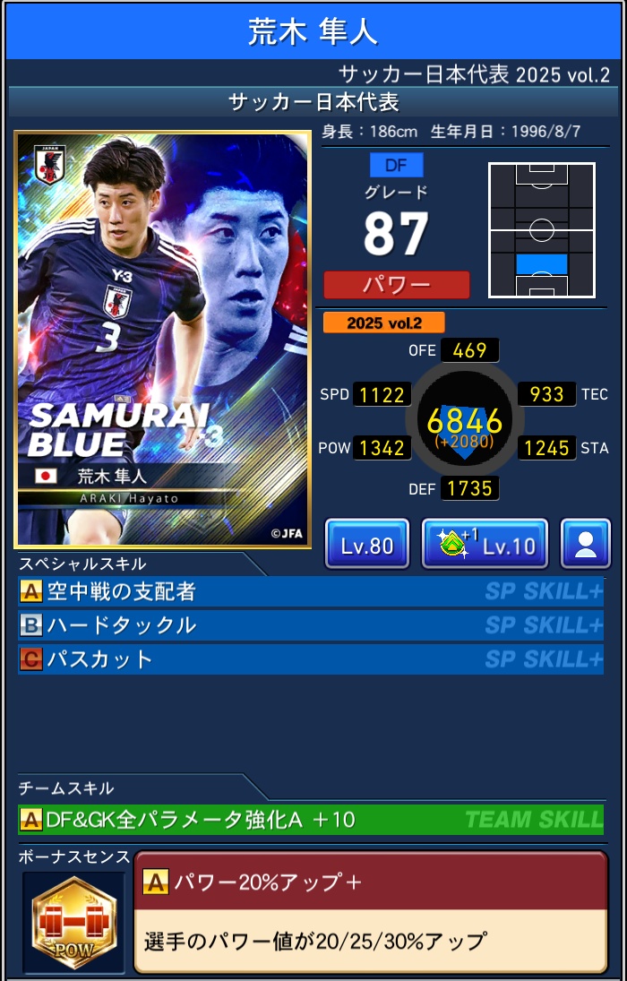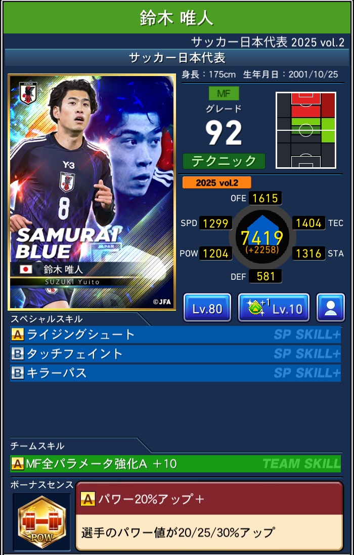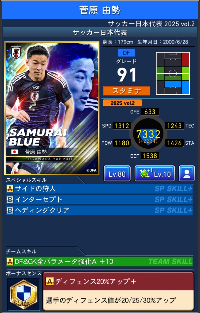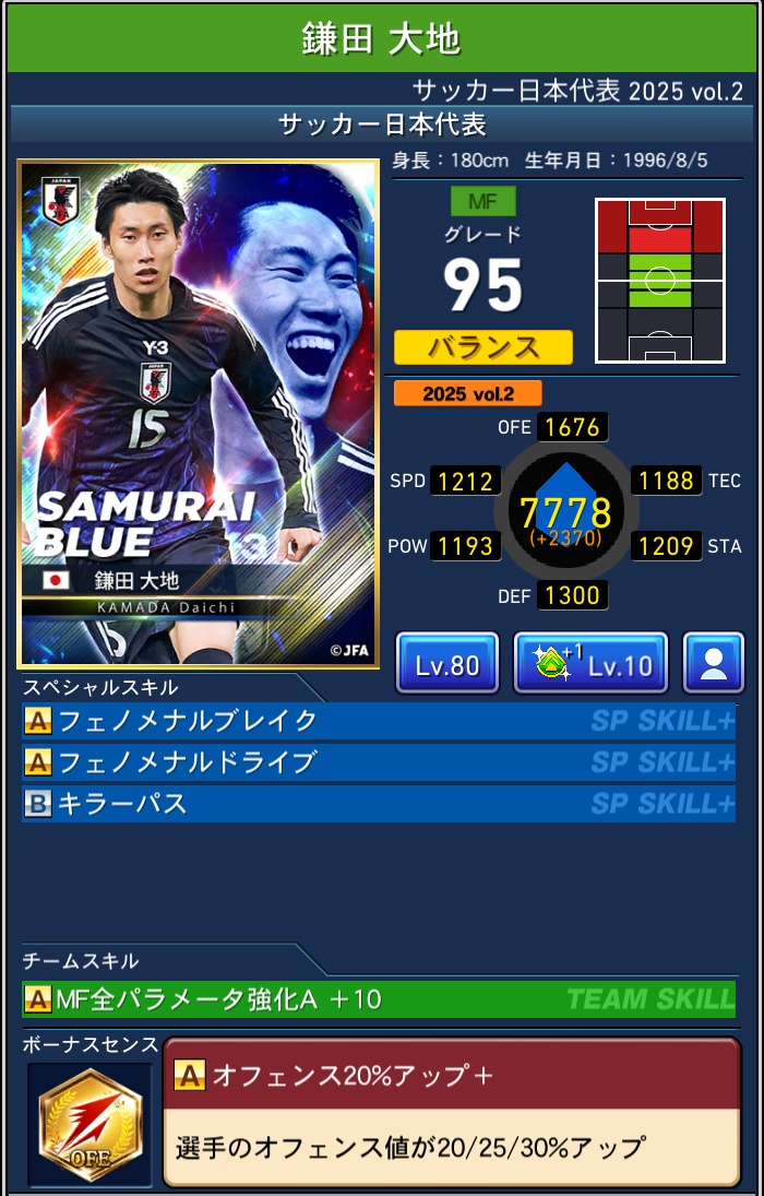 【Jクラ攻略】2025年度 日本代表 2025 11/17 サッカー日本代表 限定カード 2025年11月17日 目次2025 日本代表 & ピックアップ について 排出期間 2025年11月10日~2025年12月12日 排出選手『日本代表編』 【GK:ゴールキーパー】 【DF:ディフェンダー】 【MF/FW:ミッドフィルダー/フォワード】 サッカー日本代表 限定カード よかったらシェアしてね! URLをコピーしました! URLをコピーしました! 【Jクラ】「2025 Jリーグクライマックス!エンブレムゲッター」徹底攻略!特効12倍&霜月コイン・MVPコイン報酬まとめ 【Jクラ攻略】2025年度 月間ベストゴール(9月) 関連記事 【Jクラ攻略】2025年度 Levain CUP MVP/ニューヒーロー賞 2025年11月28日 【Jクラ攻略】2025年度『J2編』 JOKERS 2025年11月28日 【Jクラ攻略】2025年度『J1編』 JOKERS 2025年11月28日 【Jクラ攻略】2025年度 月間ベストセーブ(9月) 2025年11月28日 【Jクラ攻略】2025年度『J2編』FOCUSED PLAYERS Vol.6 2025年11月19日 【Jクラ攻略】2025年度『J1編』FOCUSED PLAYERS Vol.6 2025年11月19日 【Jクラ攻略】2025年度 月間ベストゴール(9月) 2025年11月17日 【Jクラ攻略】2025年度『J2編』 HIGHRISES 2025年11月6日 コメント コメントする コメントをキャンセルコメント ※ 名前 ※ メール ※ サイト 次回のコメントで使用するためブラウザーに自分の名前、メールアドレス、サイトを保存する。