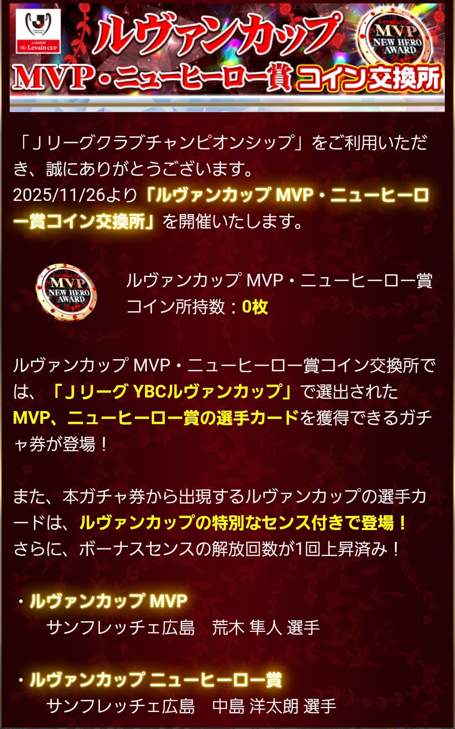 【Jクラ攻略】2025年度 Levain CUP MVP/ニューヒーロー賞