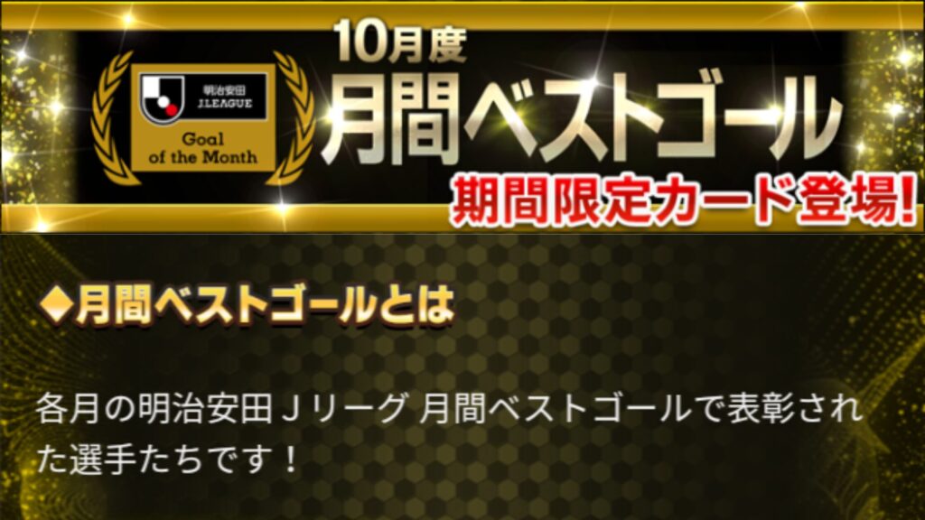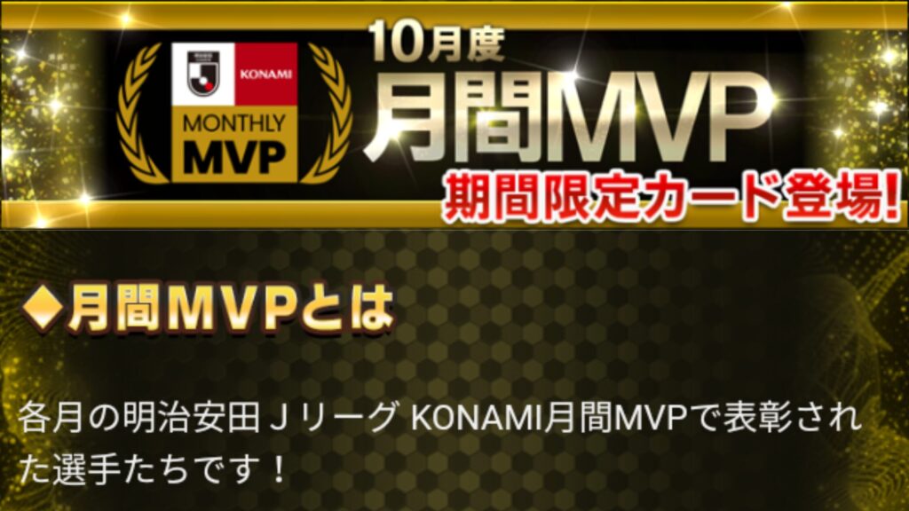 2025年度 月間MVP(10月) について 排出(イベント上位報酬) 11/26~開催「トロフィーランブル」のランキング報酬 など 排出選手 【鹿島アントラーズ】(イベント上位報酬など) 【鹿島アントラーズ】(コイン交換など) 【徳島ヴォルティス】(イベント... -