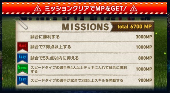 ミッションをクリアしてMPを集めましょう。最大で1回の試合で6,700MPが獲得可能です!