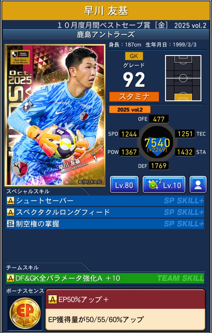 【Jクラ攻略】2025年度 月間ベストセーブ(10月) 2025 12/17 限定カード 2025年12月17日 目次2025 月間ベストセーブ(10月)について 排出(イベントコイン交換) 排出選手 【鹿島アントラーズ】 【RB大宮アルディージャ】 限定カード よかったらシェアしてね! URLをコピーしました! URLをコピーしました! 【Jクラ攻略】2025年度 TIMESLIP STAR Vol.37 関連記事 【Jクラ攻略】2025年度 TIMESLIP STAR Vol.37 2025年12月17日 【Jクラ攻略】2025年度 月間ベストゴール(10月) 2025年12月10日 【Jクラ攻略】2025年度『J2編』FOCUSED PLAYERS Vol.7 2025年12月10日 【Jクラ攻略】2025年度『J1編』FOCUSED PLAYERS Vol.7 2025年12月10日 【Jクラ攻略】2025年度 月間MVP(10月) 2025年12月10日 【Jクラ攻略】2025年度 Levain CUP MVP/ニューヒーロー賞 2025年11月28日 【Jクラ攻略】2025年度『J2編』 JOKERS 2025年11月28日 【Jクラ攻略】2025年度『J1編』 JOKERS 2025年11月28日 コメント コメントする コメントをキャンセルコメント ※ 名前 ※ メール ※ サイト 次回のコメントで使用するためブラウザーに自分の名前、メールアドレス、サイトを保存する。
